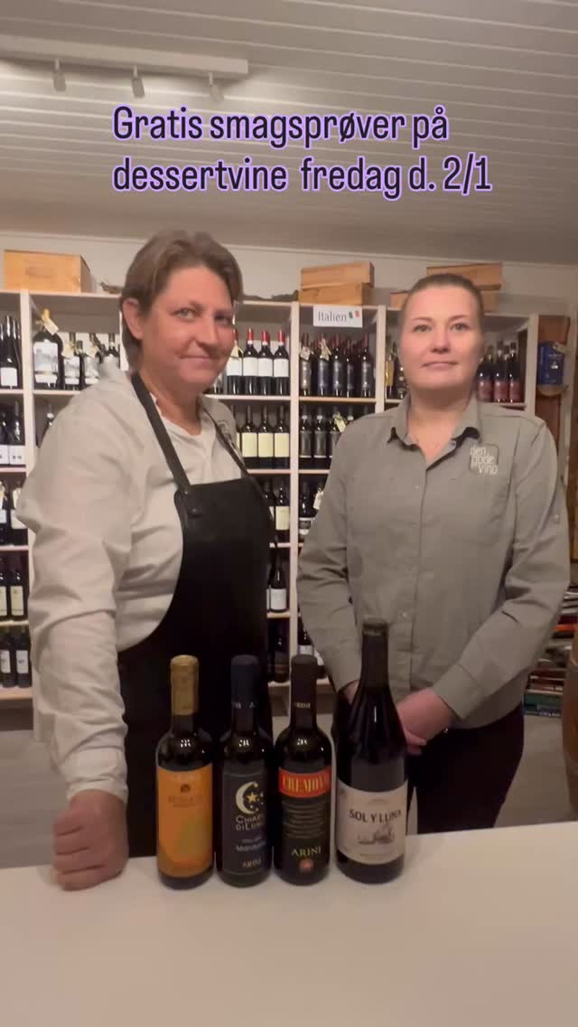 Vi indleder 2026’med gratis smagning af hele 4 fl. Alle i den søde genre, en mørk Monastrell fra Spanien og så lyse fra Sicilien. Vi er ikke eksperter i dessertvin, så hjælp os endelig med at bedømme dem. Og har du lyst til et glas i baren, kan du købe Sol y Luna for kun 30kr, eller en fl. For 160kr denne fredag.