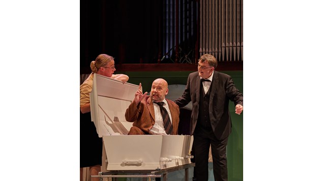 Fredag den 20. september 2024 kl. 20:00 kan du opleve en unik og kulsort operakomedie i Viborg Teater. "Gul serie" finder sted i bedemandsvirksomheden "Den enes død", hvor en nyuddannet bedemandsassistent måske kan redde forretningen fra at gå under.