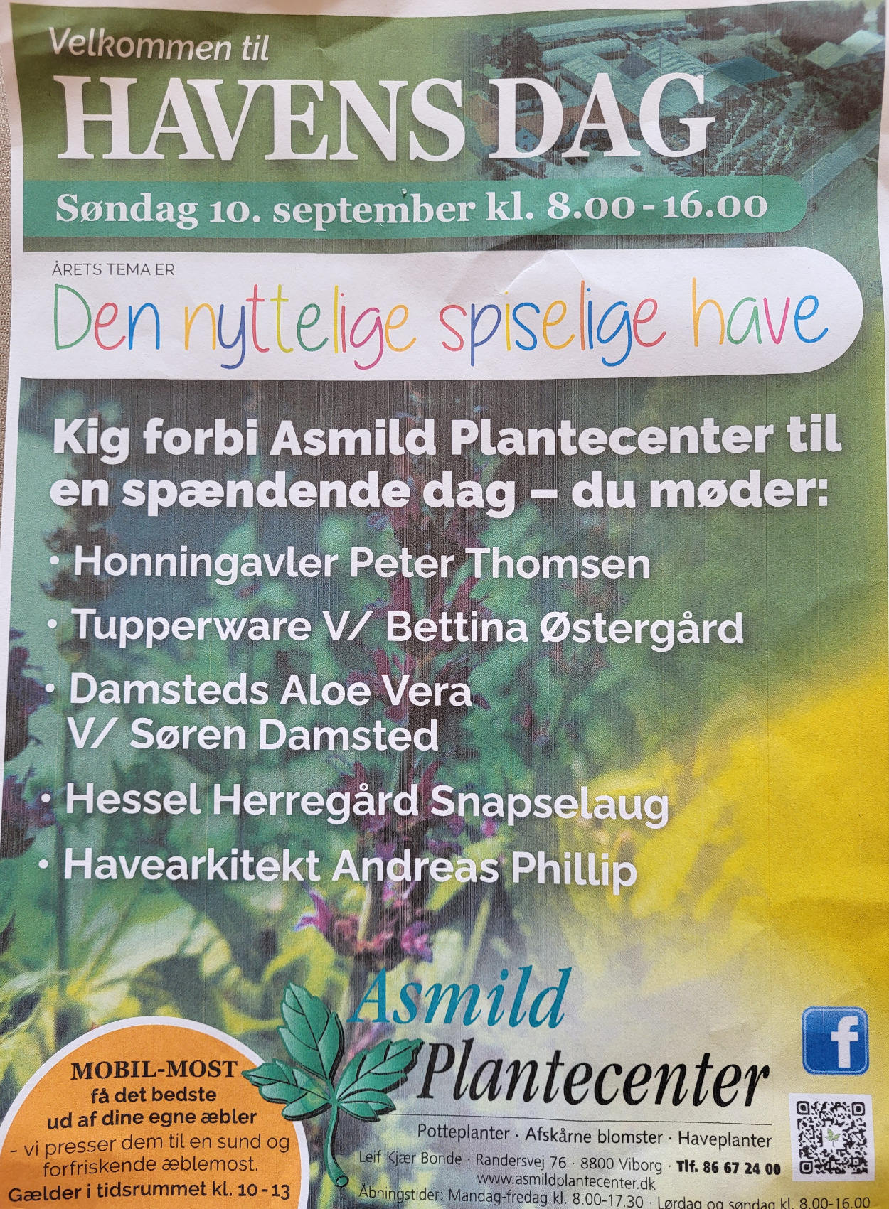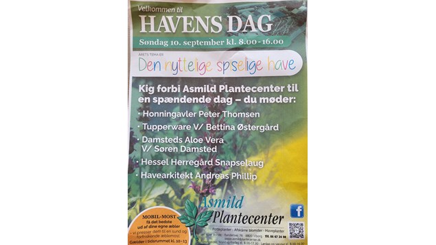 Asmild Plantecenter inviterer dig til Havens Dag fra 8 til 16, hvor du kan opleve en spændende blanding af aktiviteter og besøge spændende stande.