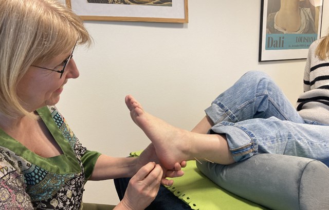 Ulla i gang med akupunkturbehandling af hælspore (Foto: "Photos by Hedegaard")
