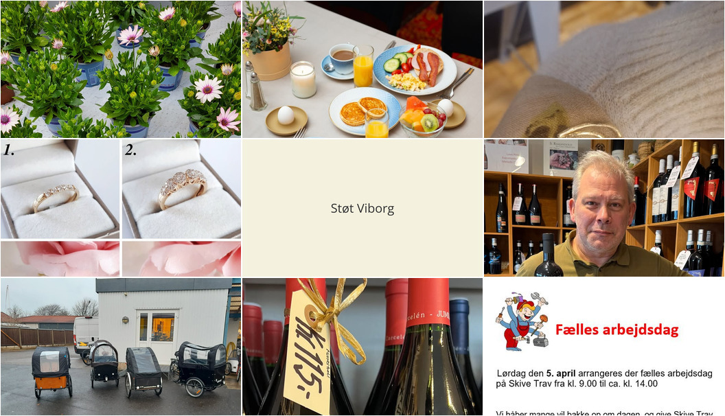 Palads Hotel Viborg tilbyder en skandinavisk morgenmadsbuffet inkluderet ved direkte booking. BioCirc Trav Arena Skive inviterer til fællesarbejdsdag den 5. april. HV Care Hjælpemidler tilbyder reparation af ladcykler og afhentning. Smykkedesigner Helga Winther præsenterer forlovelsesringe i forskellige prisklasser. Asmild Plantecenter har modtaget de første Spanske margueritter. Lahvino Wine & Spirits anbefaler Cannonau di Sardegna Riserva som den perfekte vin til påskelam. Den gode vino tilbyder 100x100 økologisk Monastrell til en nedsat pris resten af marts. For yderligere detaljer, læs de oprindelige opslag.