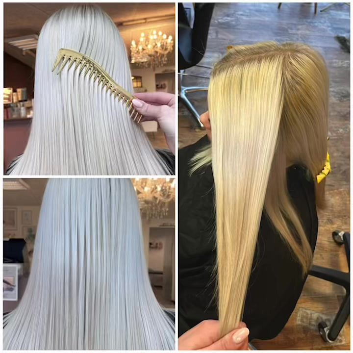 Fra gul hjemmeafblegning, til glansfuld platinblonde .. Babylights med olaplex, efterfulgt af en ‘white toner’ & klip