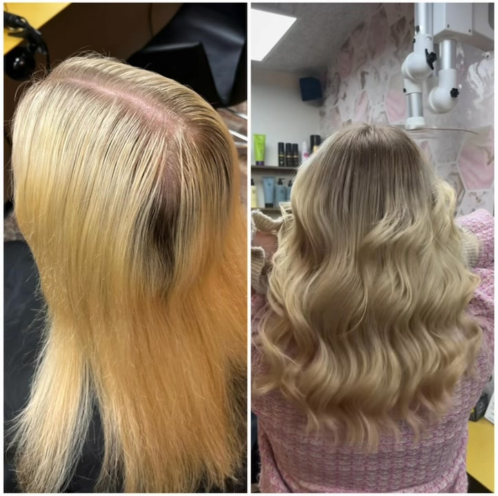 Mørk bundfarve som fader ud i en ‘vanilla blonde’ toningsfarve. Et look hvor udgroningen gerne må være der, & hvor længderne ser sundere & knap så afblegede ud