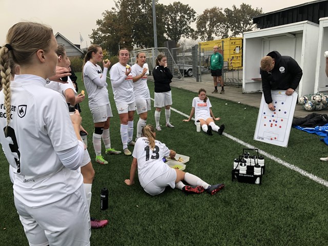 “Ida Velling Gundersen, Malou Vestergaard og Frida Smed skabte store problemer for modstanderen, og Laura Nørskov Jensen havde mange gode løb og indlæg på kanten.”