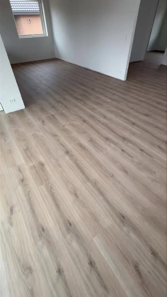 I denne uge har vi lagt et nyt gulv i hele boligen – helt uden samlinger i døråbninger!